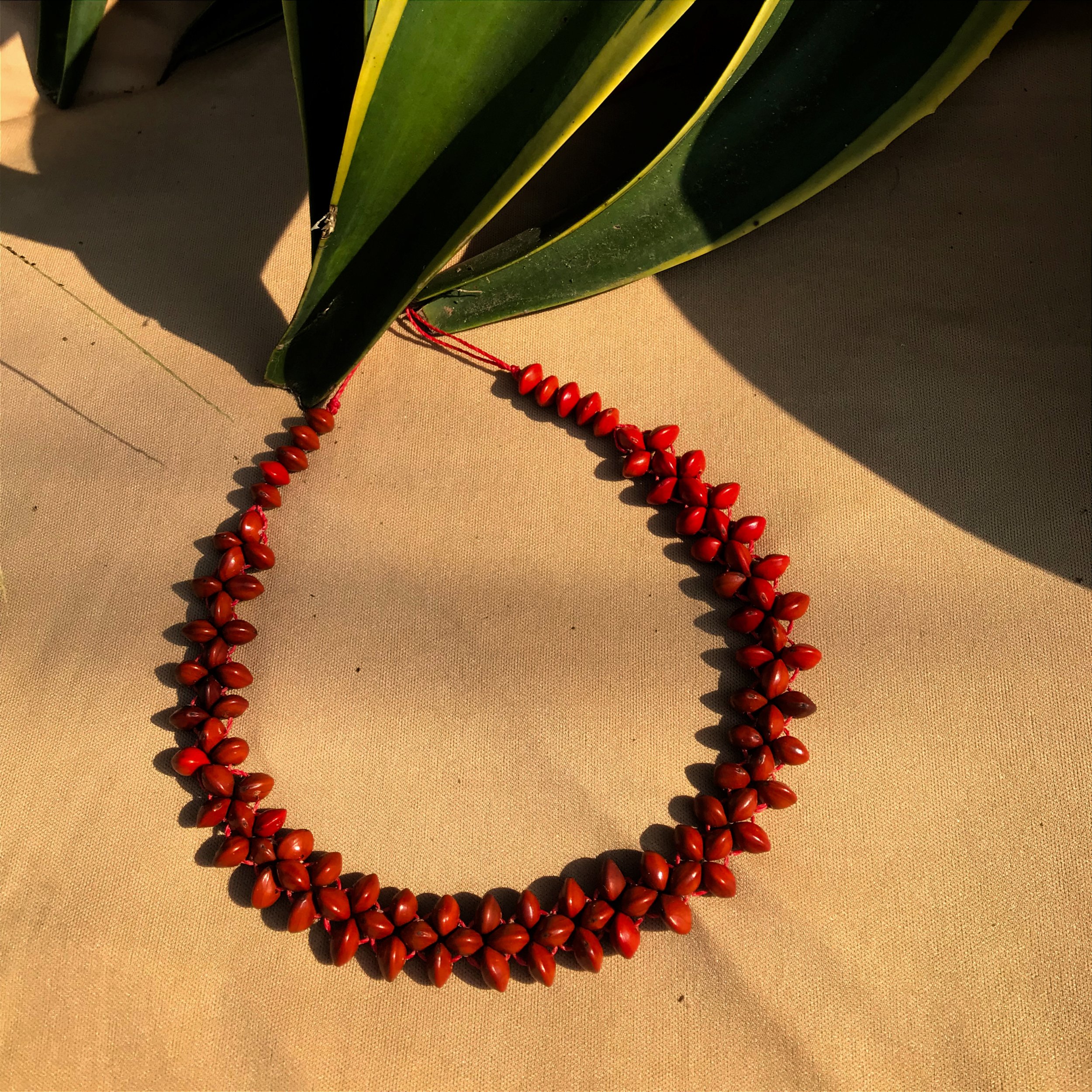 O Colar Rosa Vermelha é todo construído com as sementes de Tento Carolina, presente aqui na Mata Atlântica. Essas semente são coletadas, tratadas para grande durabilidade e furadas uma a uma pelas mãos da nossa querida artesã, que coloca toda sua dedicação e energia na criaçao de biojoias potentes!
