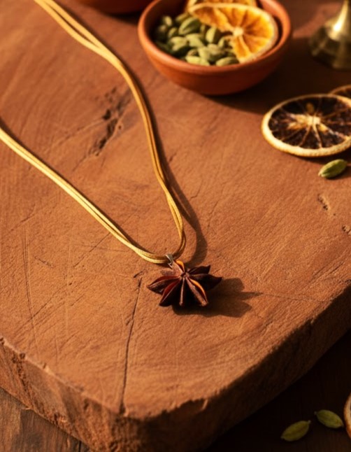 Aqui, o anis natural se torna joia — uma estrela da terra transformada em amuleto.
